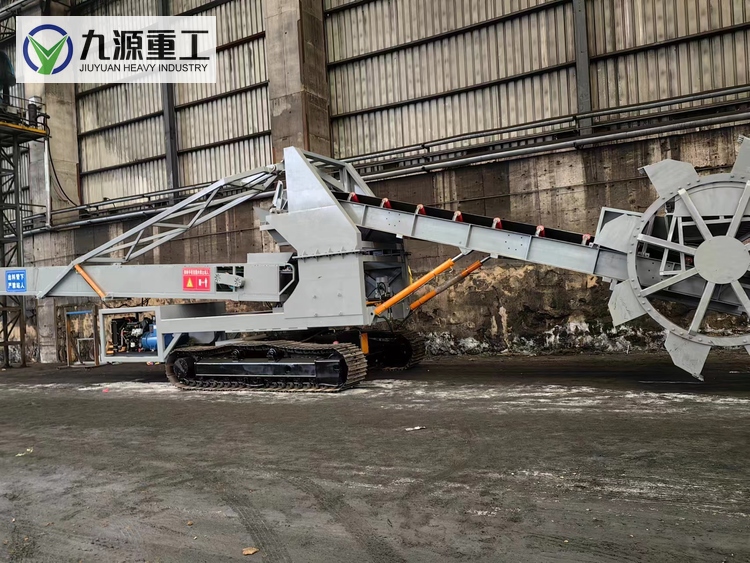 履帶式斗輪機是指一種用于大型干散貨堆場的既能堆料又能取料的連續輸送的高效裝卸機械。由可俯仰和水平擺動的膠帶輸送臂及其前端的斗輪、機架、運行機構組成,膠帶可雙向運行,取料時由斗輪取料經輸送臂送出,堆料時則由主輸送機運來的貨物經由輸送臂投向堆場。